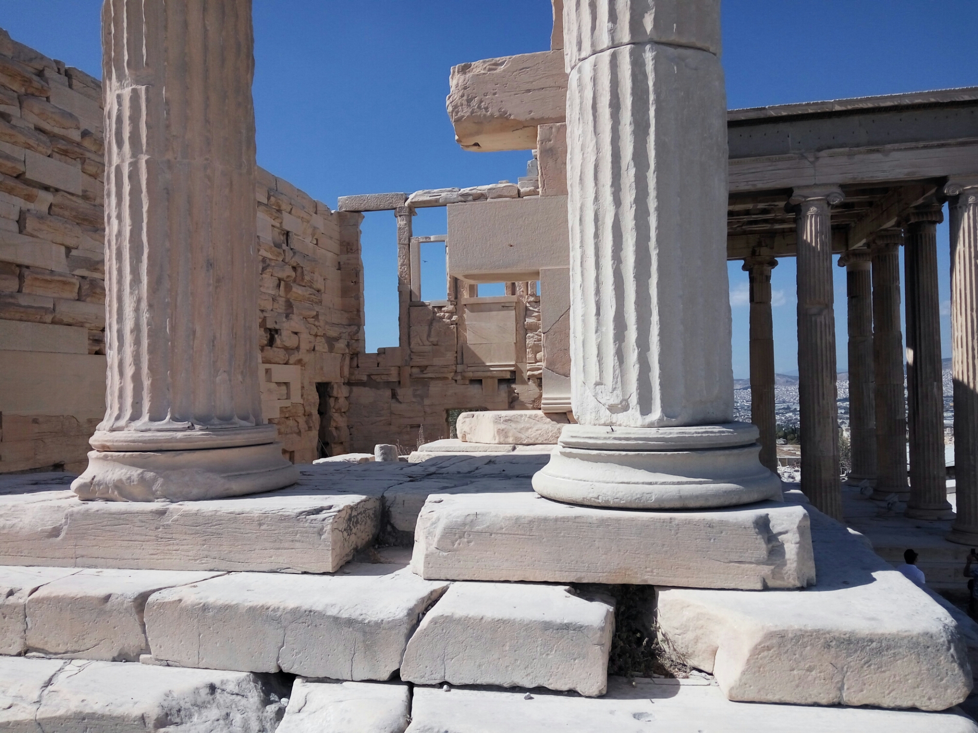 After ample time in the museum, we made our way up to the top of the Acropolis. It was quite a hike, but as soon as we got to the top, I lost all care about the scorching heat of the noontime sun on my skin, and the noise from all the masses of tourists and guides. Being amidst the majestic structure of the Parthenon and its ruins, the life-like statues likened to actual Greeks at the time, and other remnants of temples transported me to the stories and books I was very fond of as a teen. I loved The Odyssey and I fancied Greek mythology. My favorite goddess was (and still remains to be) Artemis, the goddess of hunting. I even portrayed her in one of our plays back in high school. I was so filled with wonder at the rich culture of the past that was right in front of me. History was so alive all around me, and I felt it, all of it.