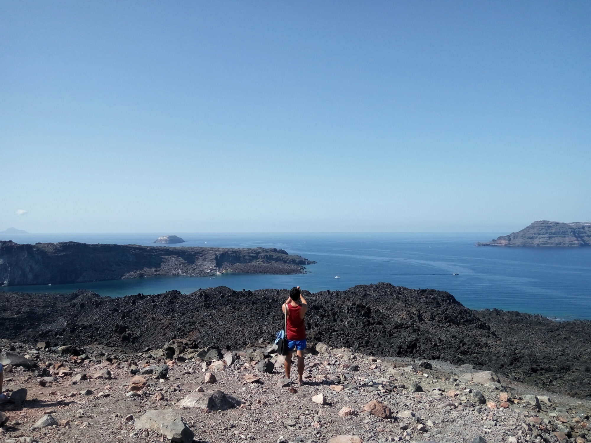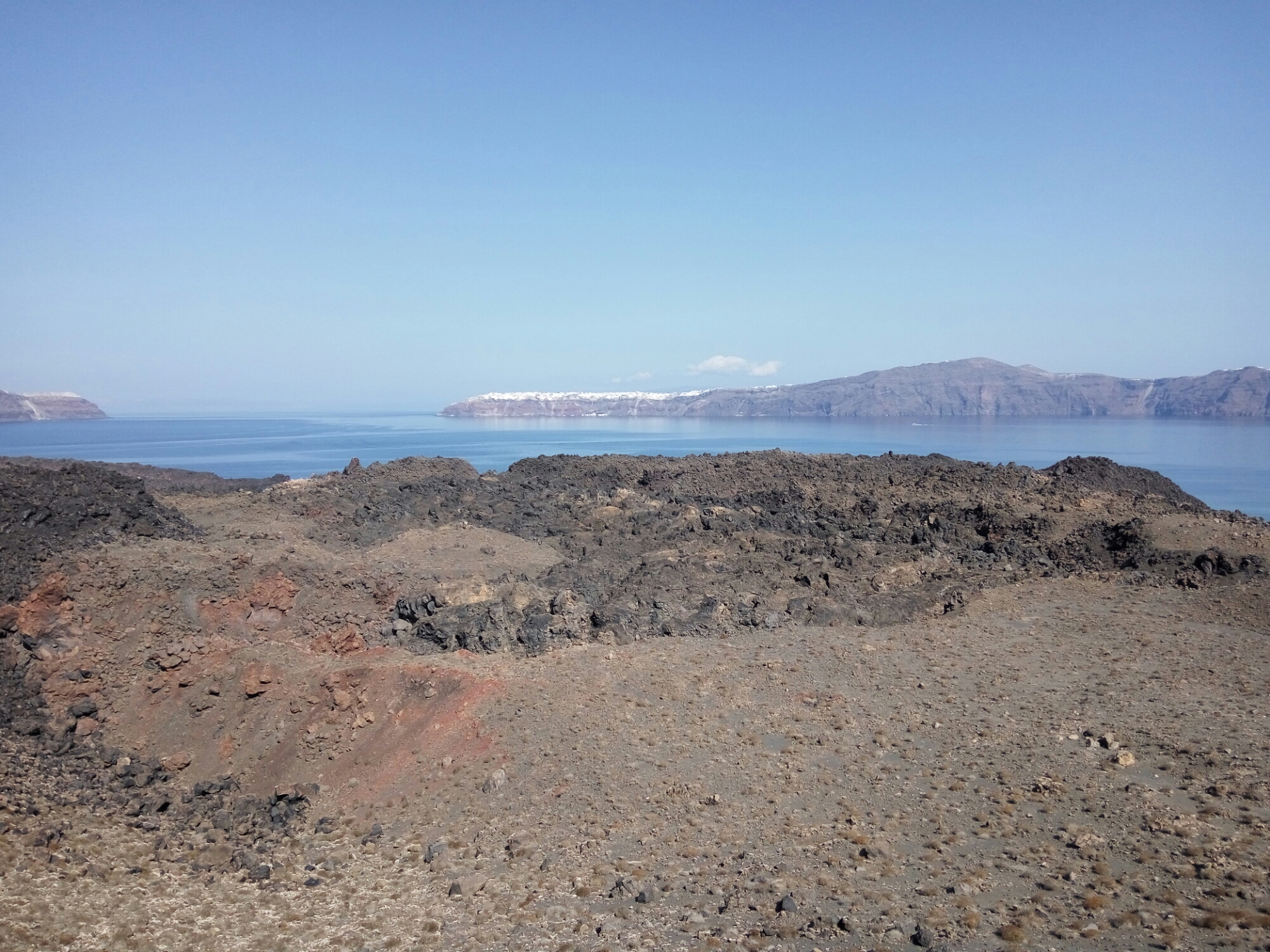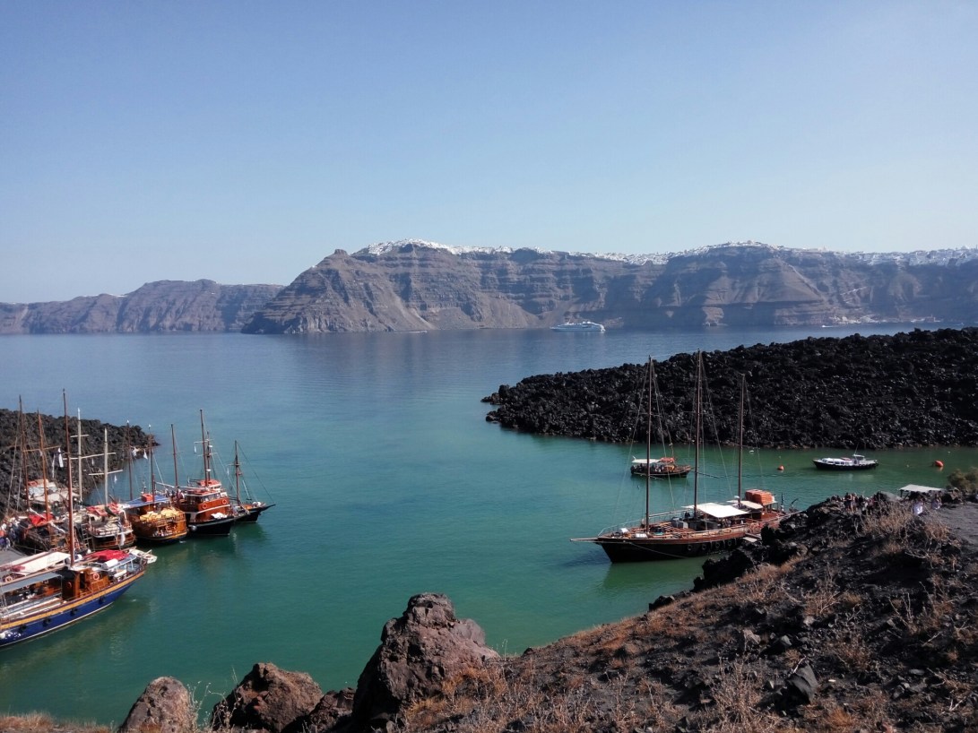 In order to explore the other nearby islands, we booked a boat tour on our second day. The the tour included a quick climb up to the Caldera, the volcano at the center of the group of islands, and a stop in Thirassia, a nearby island with a small town of only a total of 150 inhabitants. The view from the Caldera was breathtaking because it was at the center of the group of islands. At the peak, we marveled at the panoramic view of all the towns that sit on the edges of the main island. Following the climb, we were brought to the back side of the Caldera where were able to swim in the hot springs by the volcano and take advantage of the sulfur-rich water.