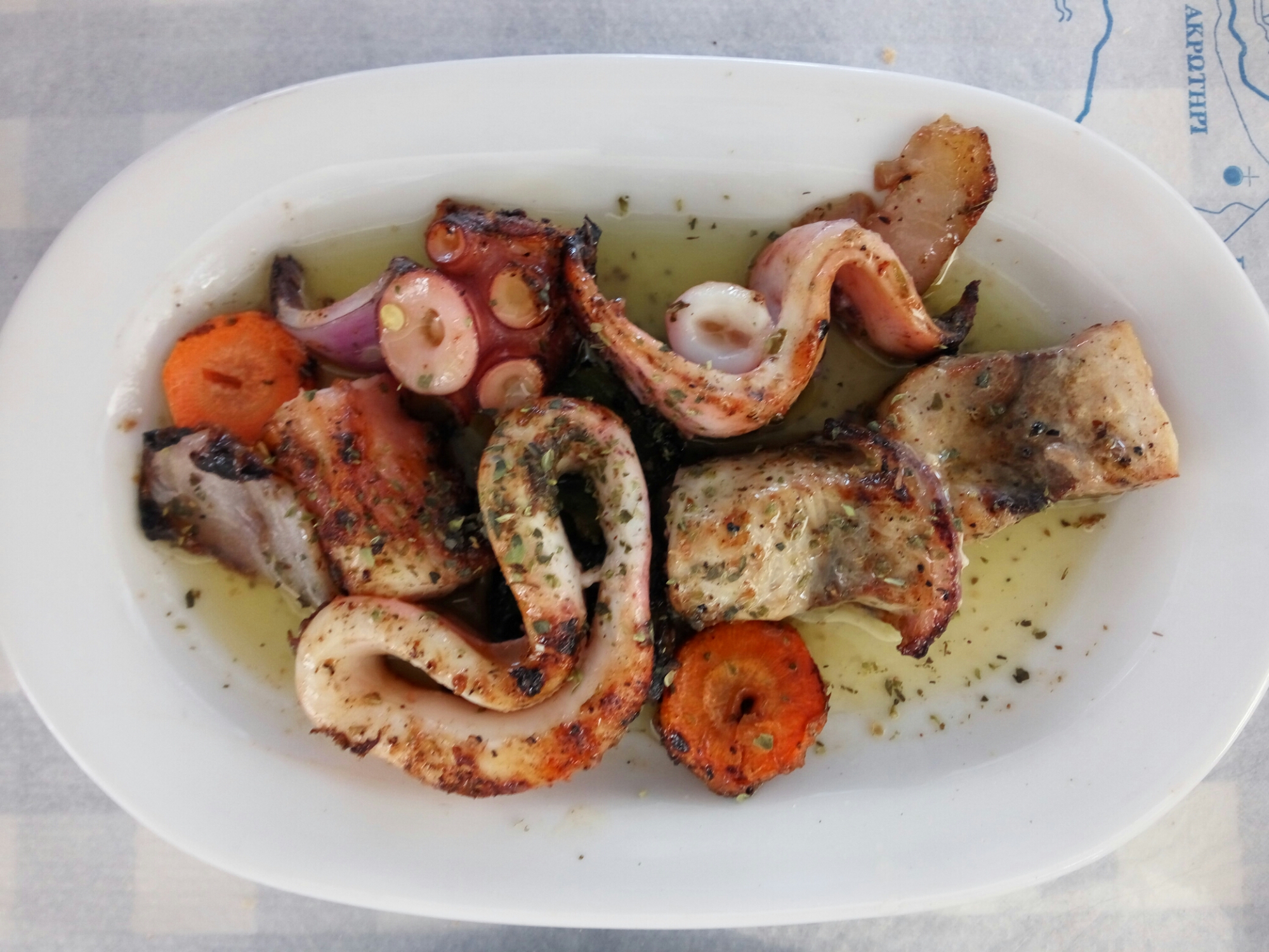 By noon, we docked in Thirassia and had lunch. There we ate THE best lamb kebab I’ve ever tasted! We also had fresh seafood. It was the best meal we had during the entire trip. I still daydream of that meal sometimes. It was that delicious.